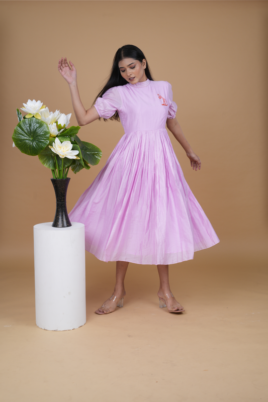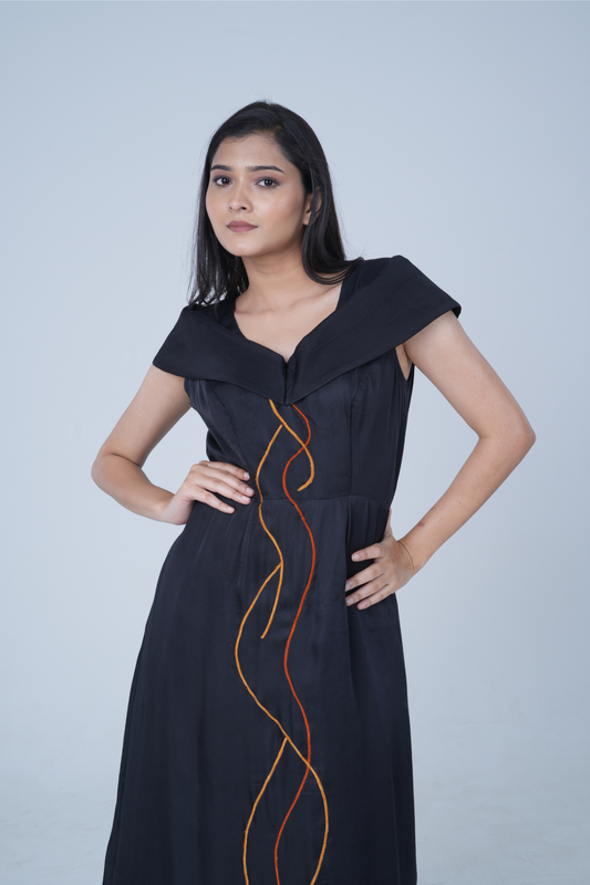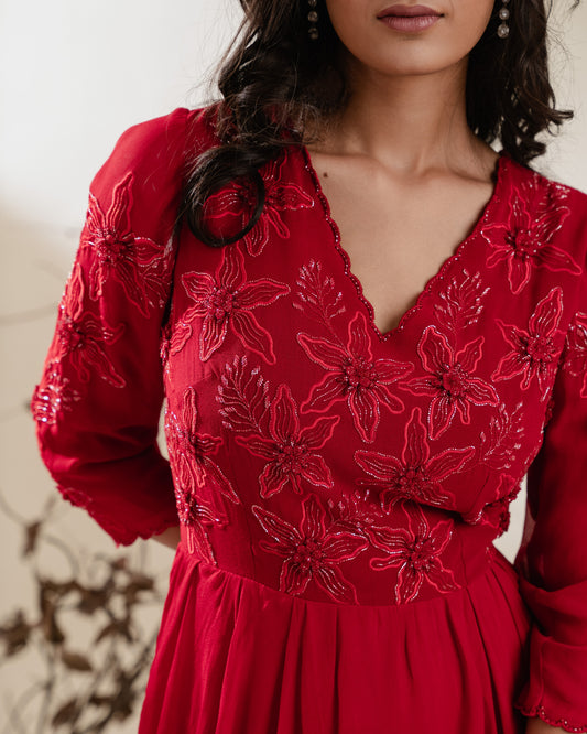Red Tiered Georgette Dress with Embroidery & Scallop Beading